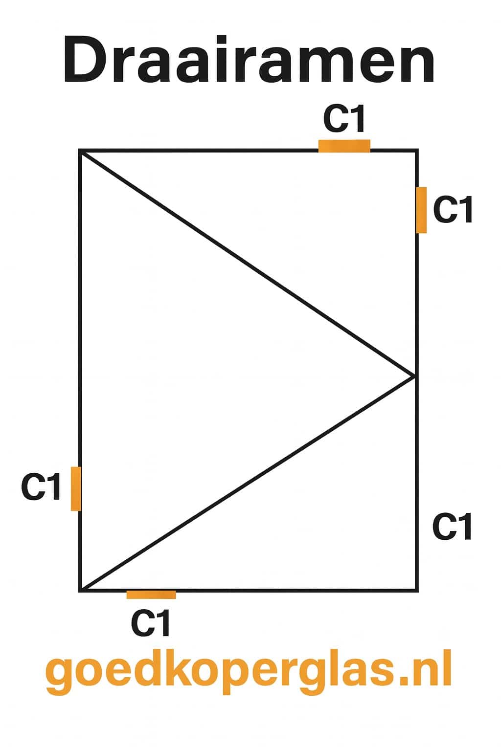 Als u de strakke maat heeft gemeten, dan moet u 8 millimeter in mindering te brengen. - Uitgaande van een standaard sponningbreedte van 17 mm. Dit doet u om beknelling van het glas te voorkomen. Belangrijk: Geef altijd als volgt de maat aan: breedte x hoogte en hou alle maten aan in millimeters.