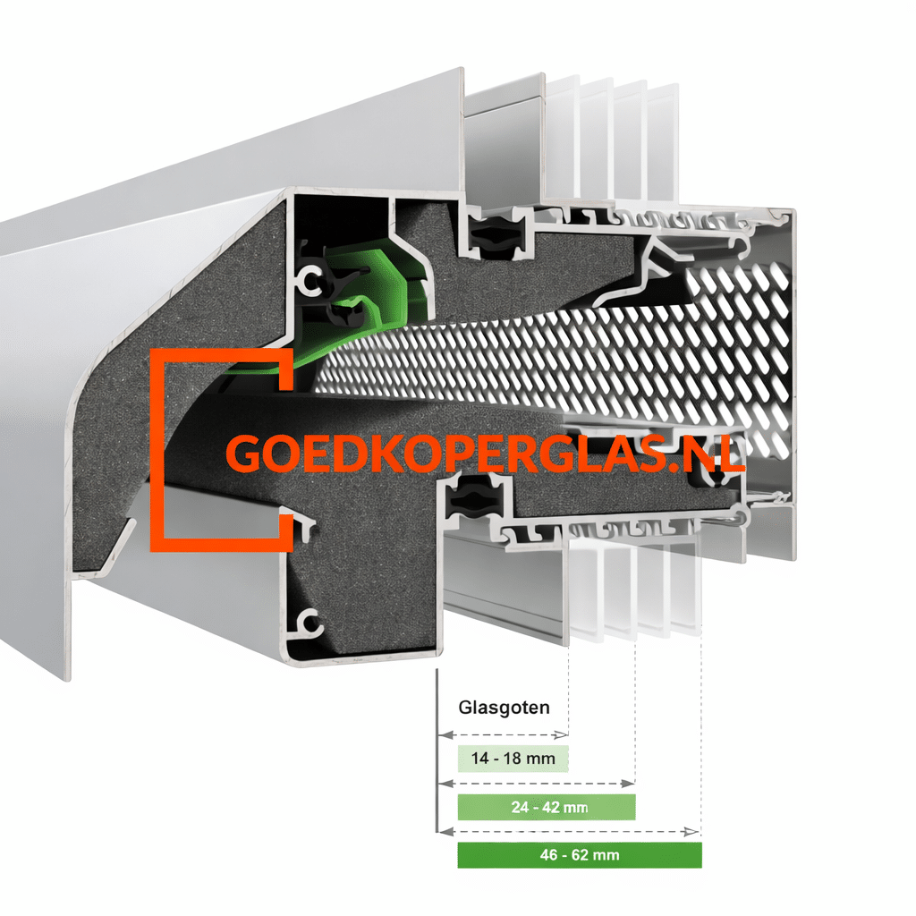 - Toepasbaar op alle glasdiktes van 8* tot 56 mm